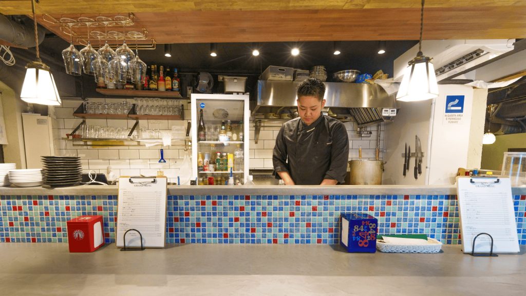 イタリアンを目の前で調理