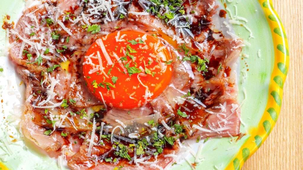 炙りの香ばしさが和牛の旨味を引き立て、さっぱりとしたカルパッチョに仕上げました。和牛の濃厚な味わいと、軽い炙りの絶妙なバランスが楽しめる一品です。